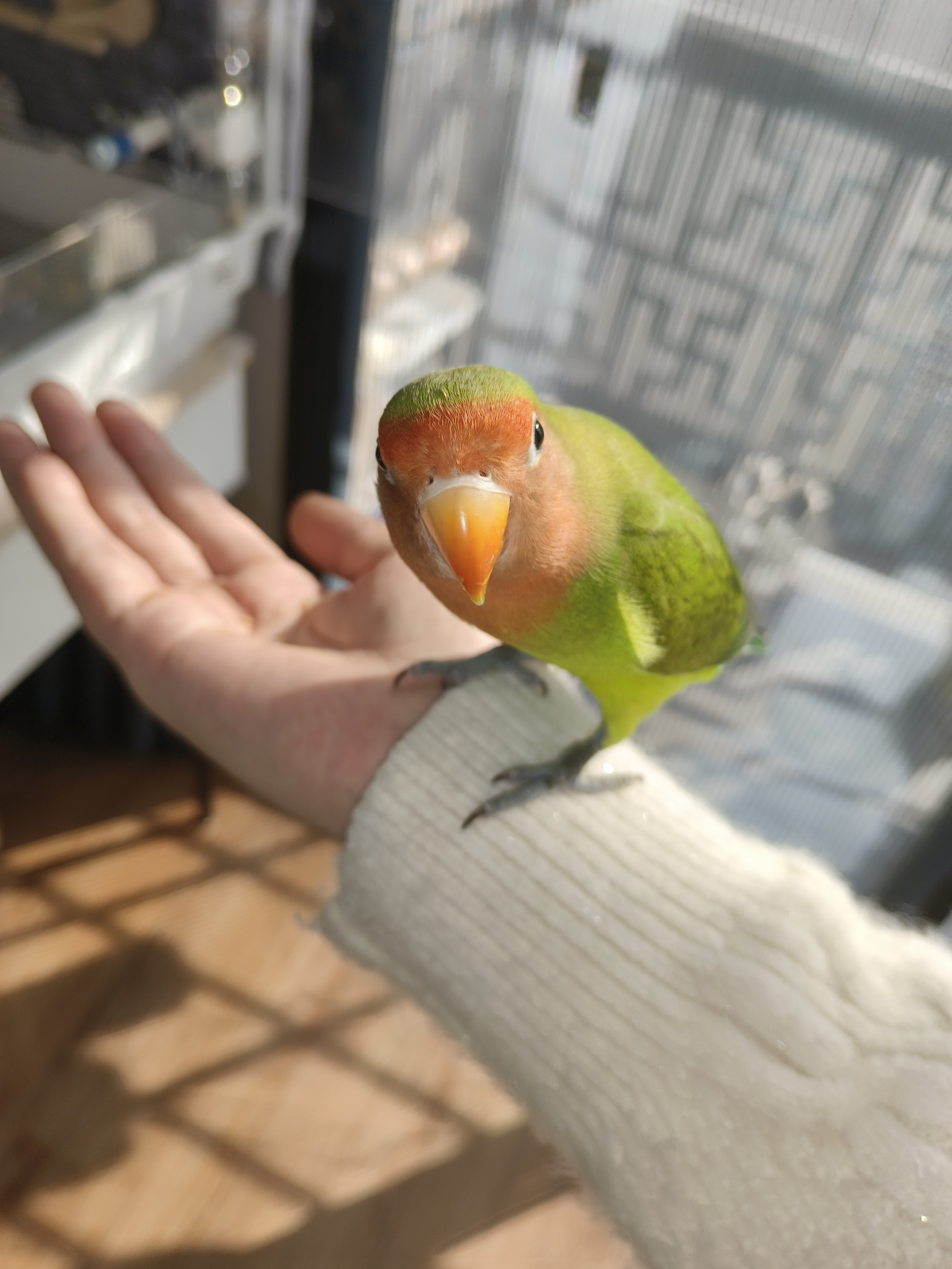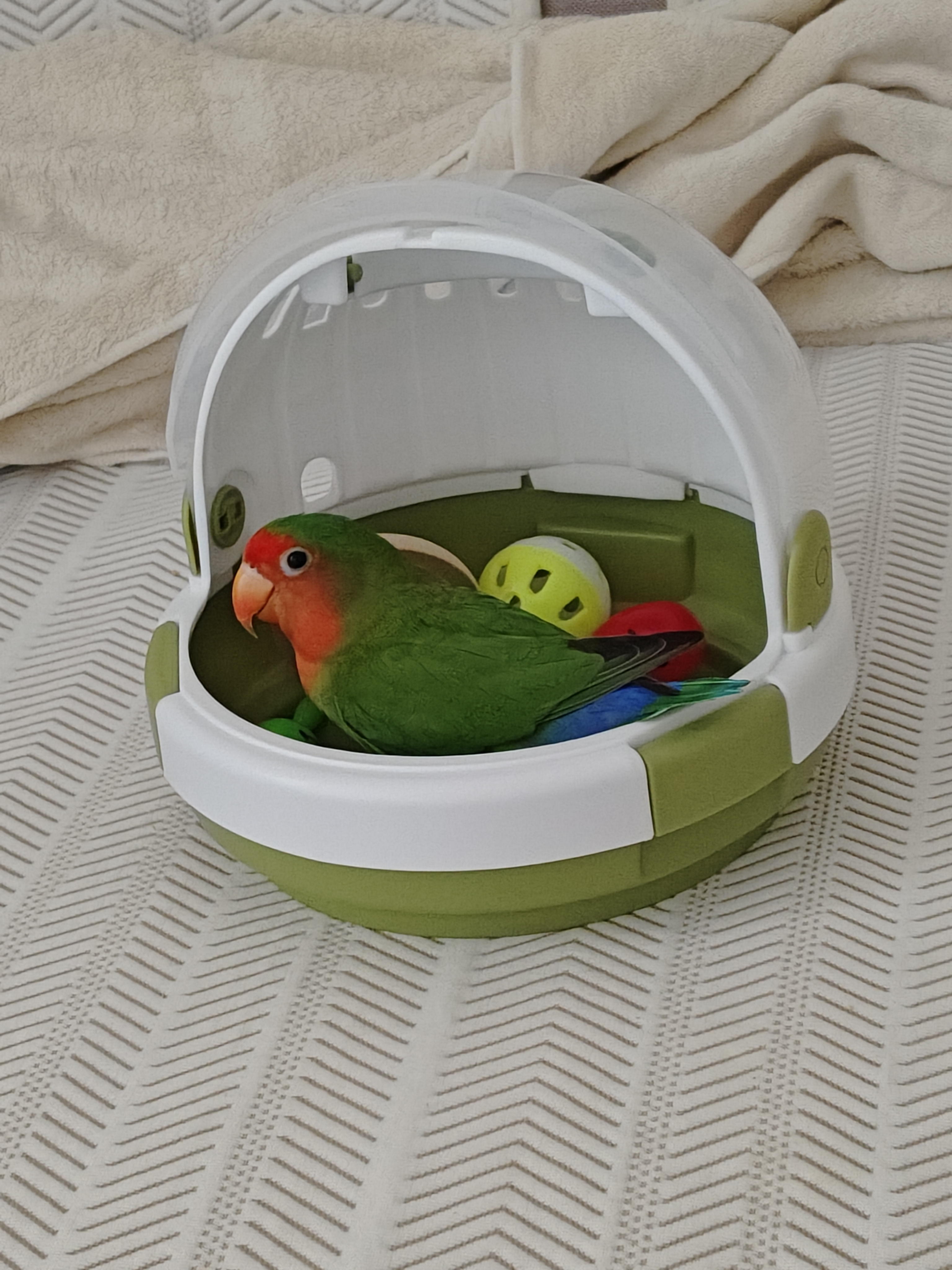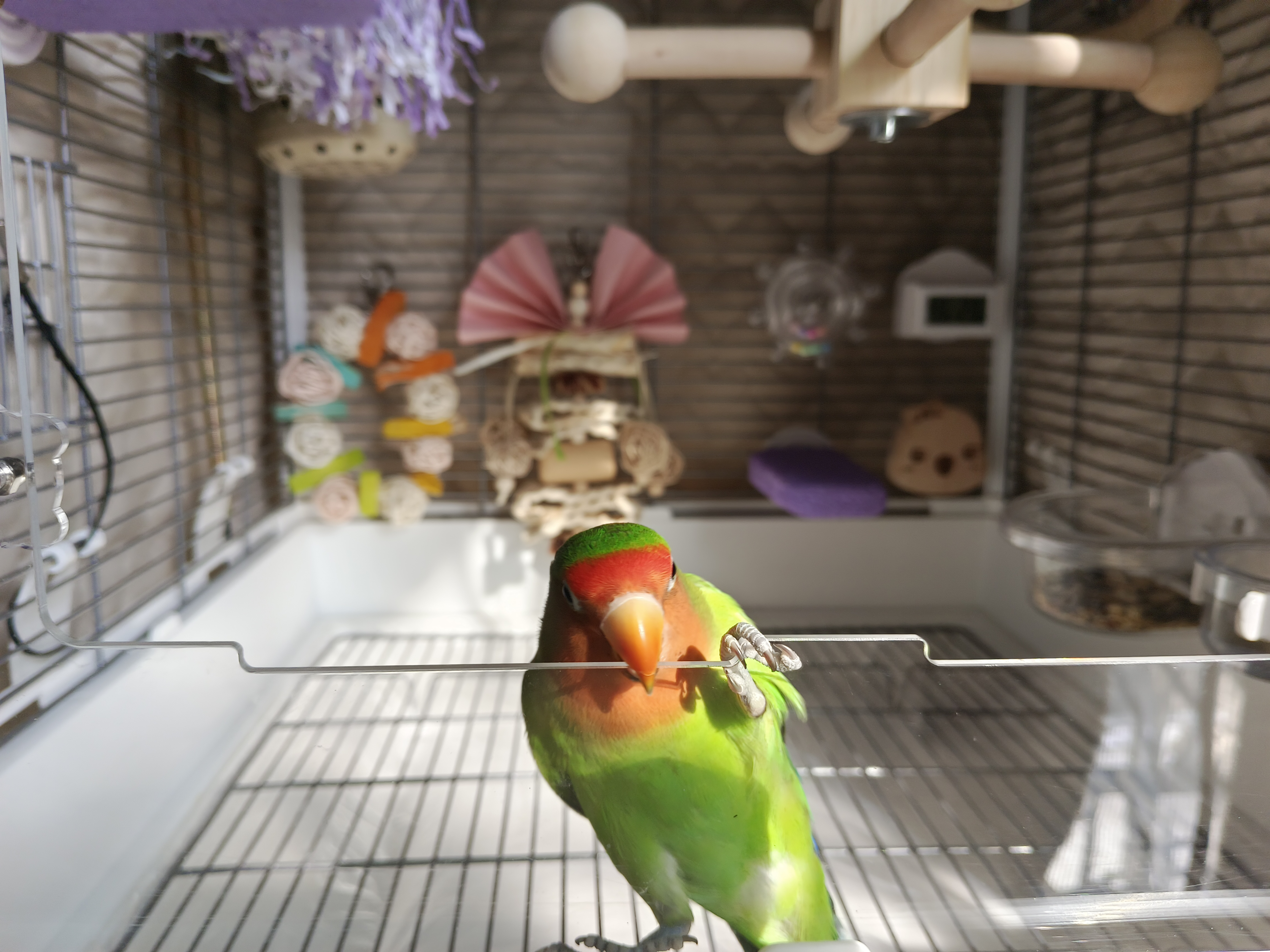 笼子布局改了很多次,一直在观察它的生活习惯,试图摆放出最舒适的位置,为此也花费了很多,咬人真疼啊!