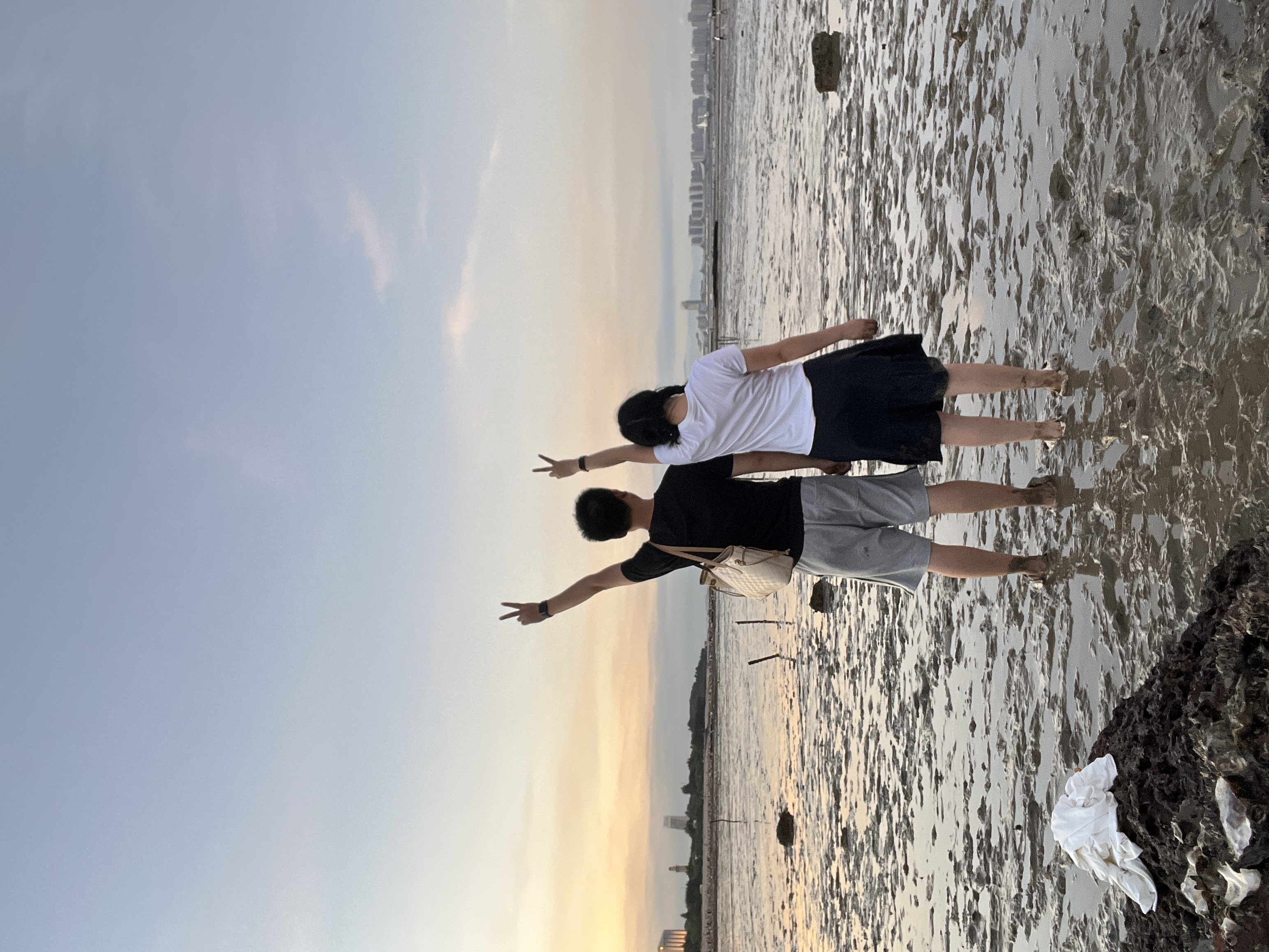 2025-08-9 13:22:03 星期六 下午5点出发,不想打车,我们就骑了电动车出门,十公里大概半小时就到了。 海滩落潮,水位比上次来退了很多,找老奶奶买了小桶就开始挖。 小螃蟹很多,还有寄居蟹,奇怪的海里生物,赶着夕阳拍了一些照片,第一次用手表控制拍照,还不太熟练,下一次去玩多拍一些。